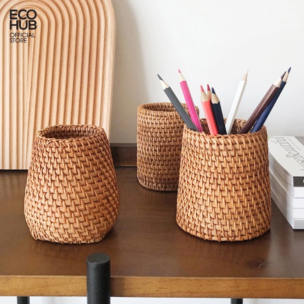 Cốc Mây Guột cắm Hoa khô / Văn phòng phẩm / Decor. 10x9cm (Rattan Utensil Holder) | EH027____