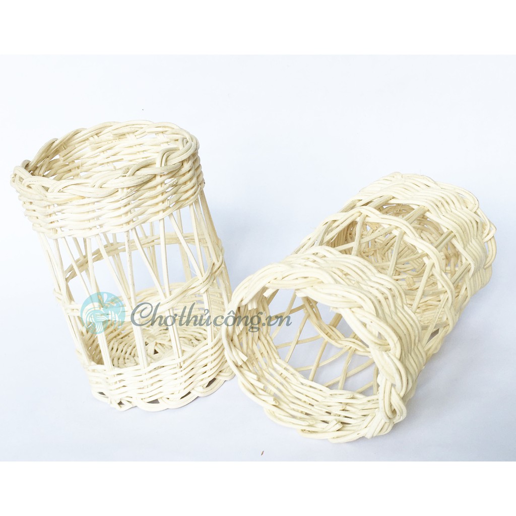 Cốc mây - Lọ mây tròn handmade đan mây tự nhiên 100% KT M10xC15cm đựng ly chai lọ thủy tinh, cắm bút, cắm hoa, decor