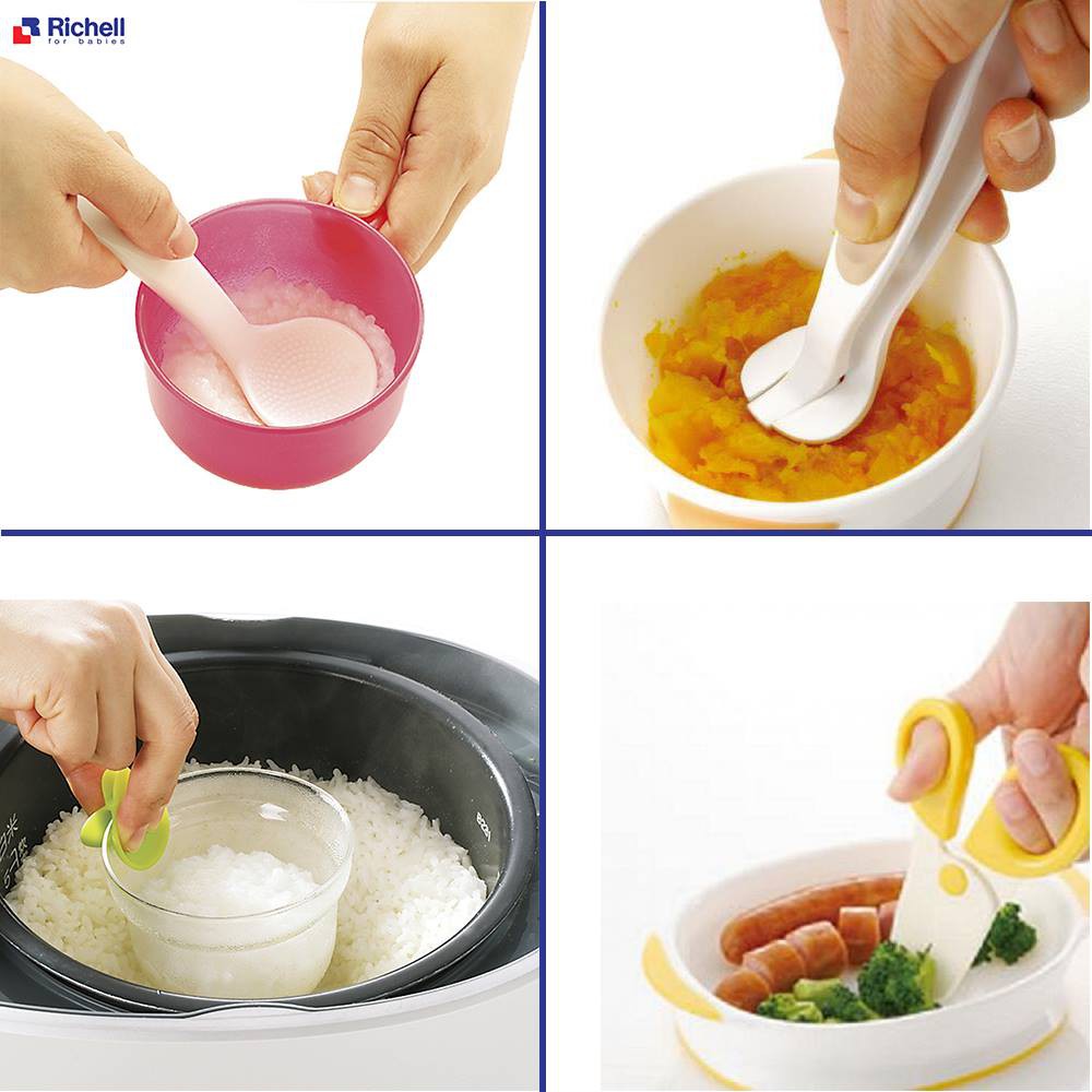 -Bộ sản phẩm Cốc nấu cháo/cơm nát Richell bao gồm các phụ kiện :