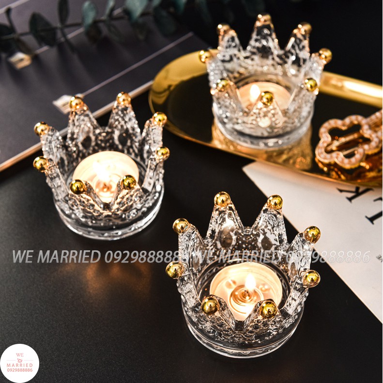 Nhà cửa & Đời sống > Trang trí nhà cửa > Nến & đồ đựng nến || Cốc nến pha lê vương miện (trong suốt/đỉnh vàng)Còn hàng