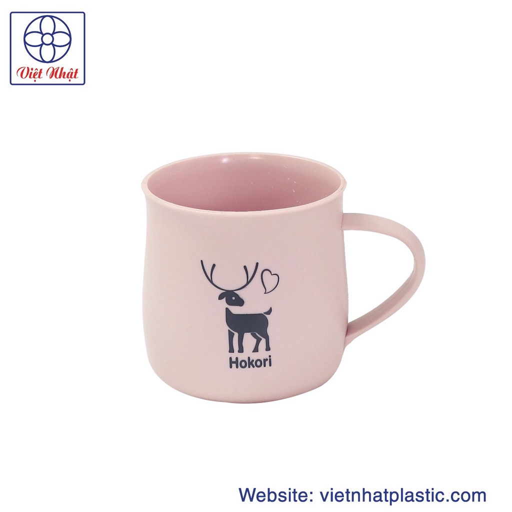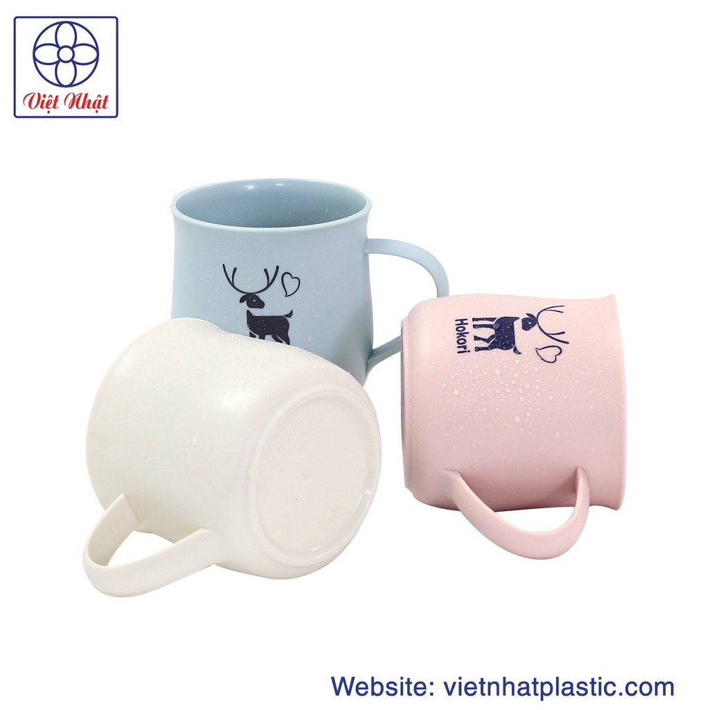 Ly Cốc nhựa hokori Việt Nhật chịu nhiệt cao cấp - Cốc nhựa có quai cầm in hình chú hươu dễ thương– 01454