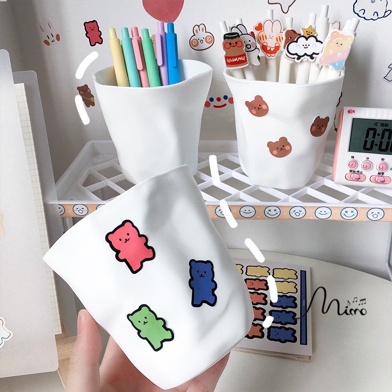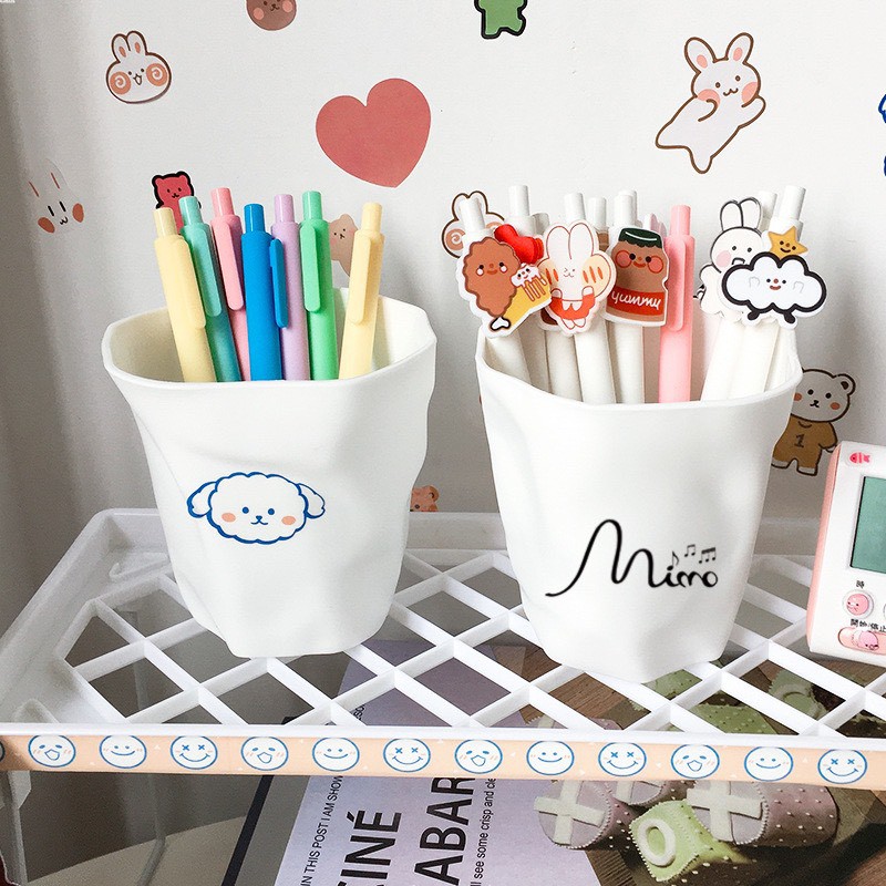 Tên sản phẩm: Cốc nhựa trắng giả vân đá kích thước 6.5*10*10cm trang trí decor bàn học, bàn làm việc siêu đẹp- Dùng làm cốc cắm bút