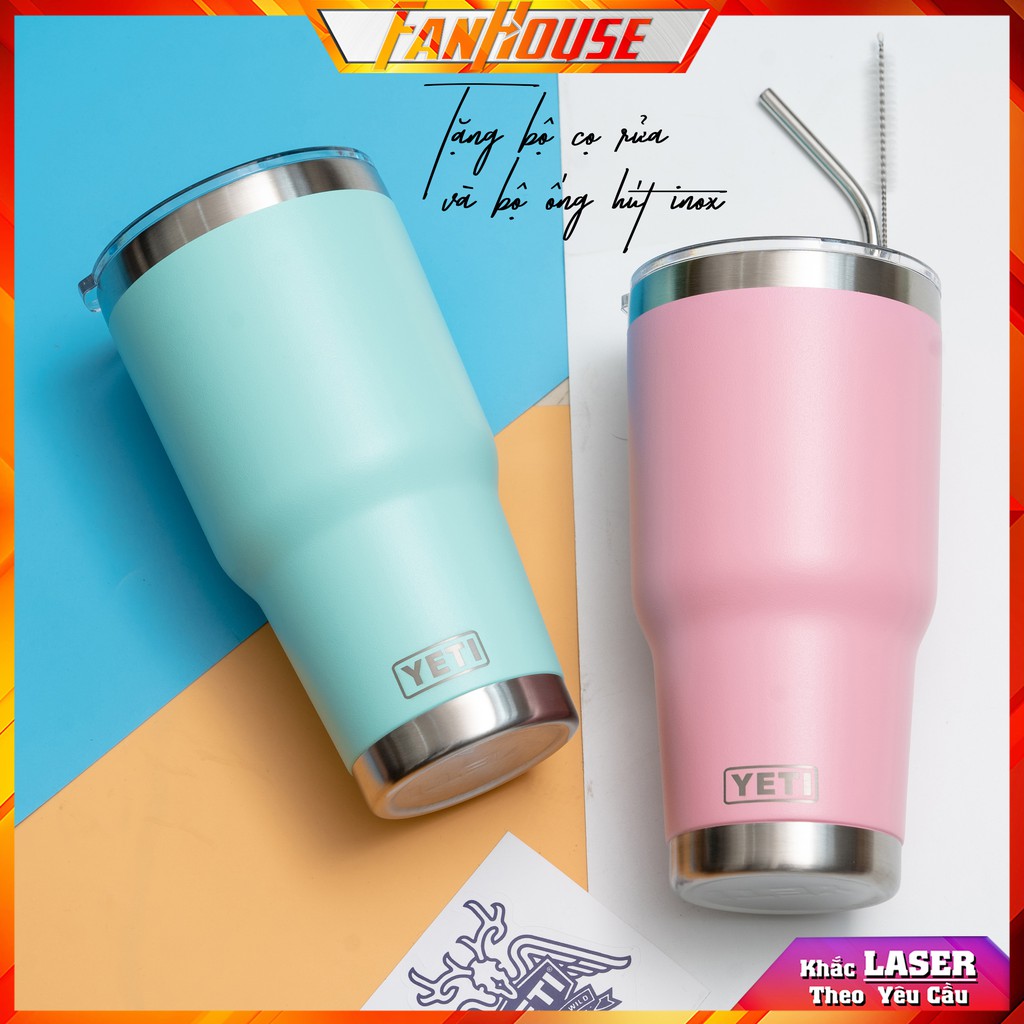 Giới thiệu Cốc nước YETI 30oz giữ nhiệt 10h ly nước cao cấp inox 304 dung tích 900ml Fan House tặng ống hút, khắc tên theo yêu cầu