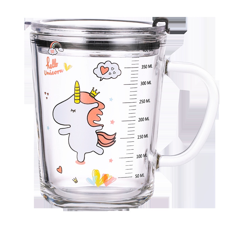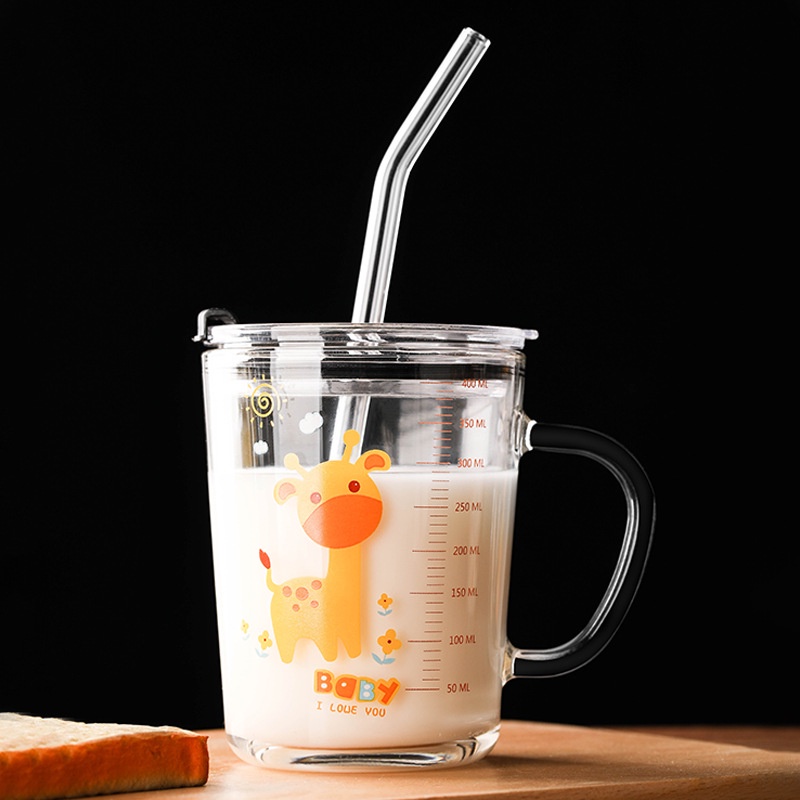 Cốc Pha Sữa Thủy Tinh Chia Vạch Siêu Tiện Lợi Có Nắp Và Ống Hút Cho Bé Dễ Dàng Vệ Sinh