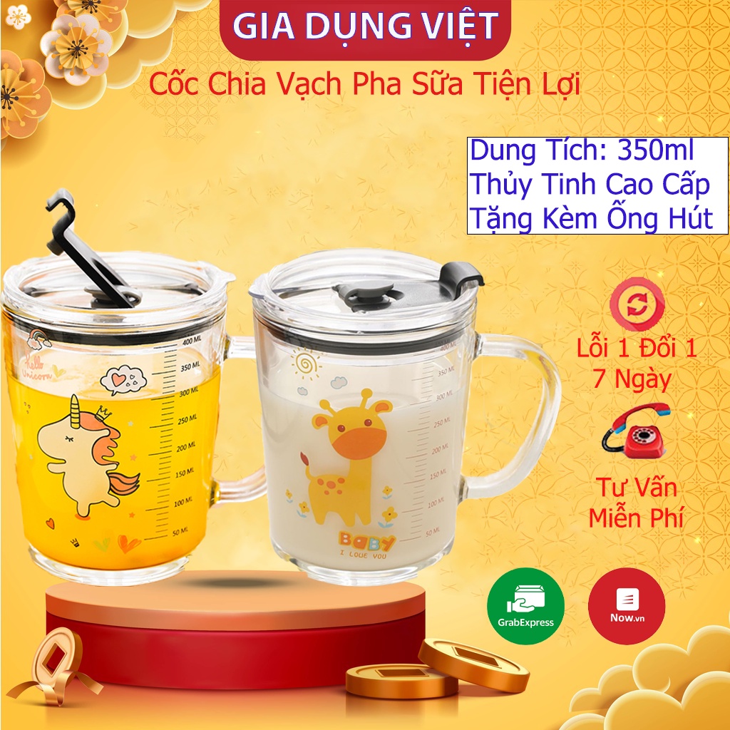 Giới thiệu Cốc Pha Sữa Thủy Tinh Chia Vạch Siêu Tiện Lợi Có Nắp Và Ống Hút Cho Bé Dễ Dàng Vệ Sinh