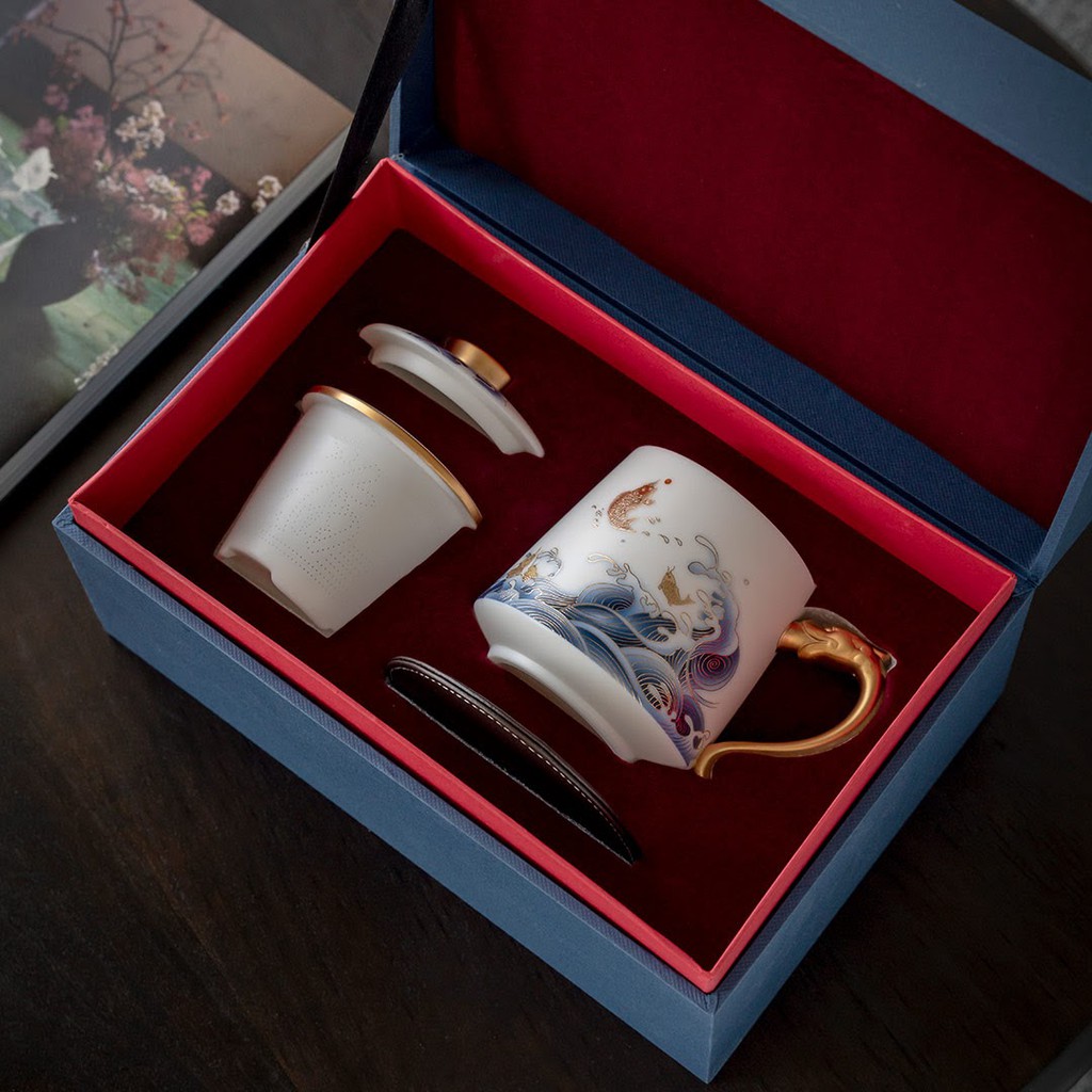 Cốc pha trà gốm sứ ZESEE sở hữu kích thước 140 x 85 x 120mm khá nhỏ gọn cùng dung tích chỉ 300ml, thích hợp cho nhu cầu thưởng trà của 1 người. Bên cạnh đó trên phần thân trà được trang trí với họa tiết hình cá koi tung tăng trên sóng nước mang ý nghĩa là lời chúc tốt lành, chuyển thời vận may mắn, vươn lên từng bước. Đồng thời đi kèm cốc trà là hộp đựng trà theo phong cách hộp quà, mang đậm vẻ đẹp truyền thống, thích hợp làm quà tặng doanh nghiệp, biếu tặng khách hàng hoặc lưu giữ để sử dụng.