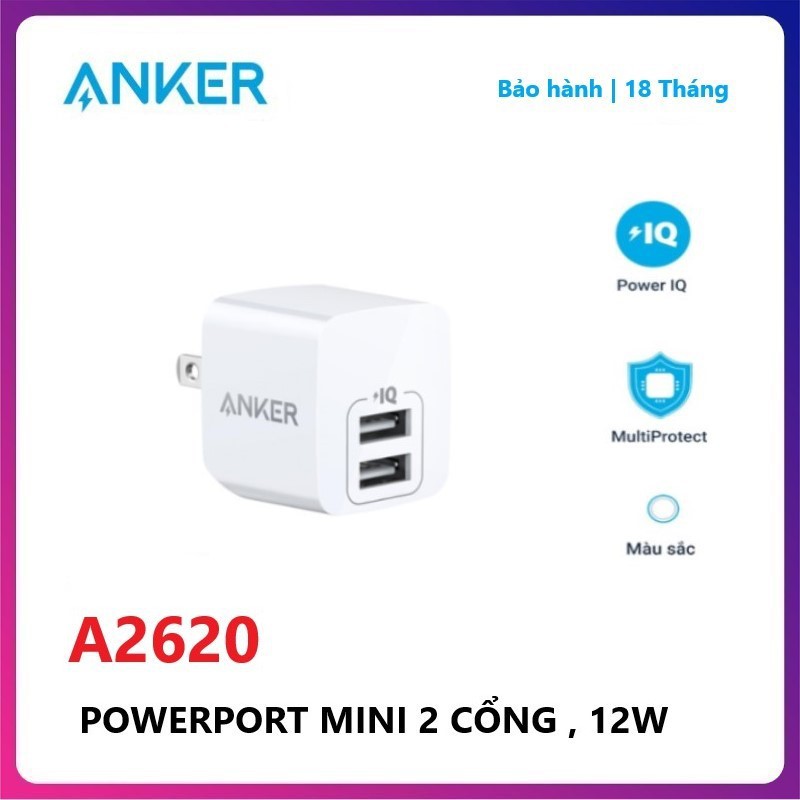 🔥 Củ sạc 2 Cổng Anker PowerPort Mini 12W - A2620