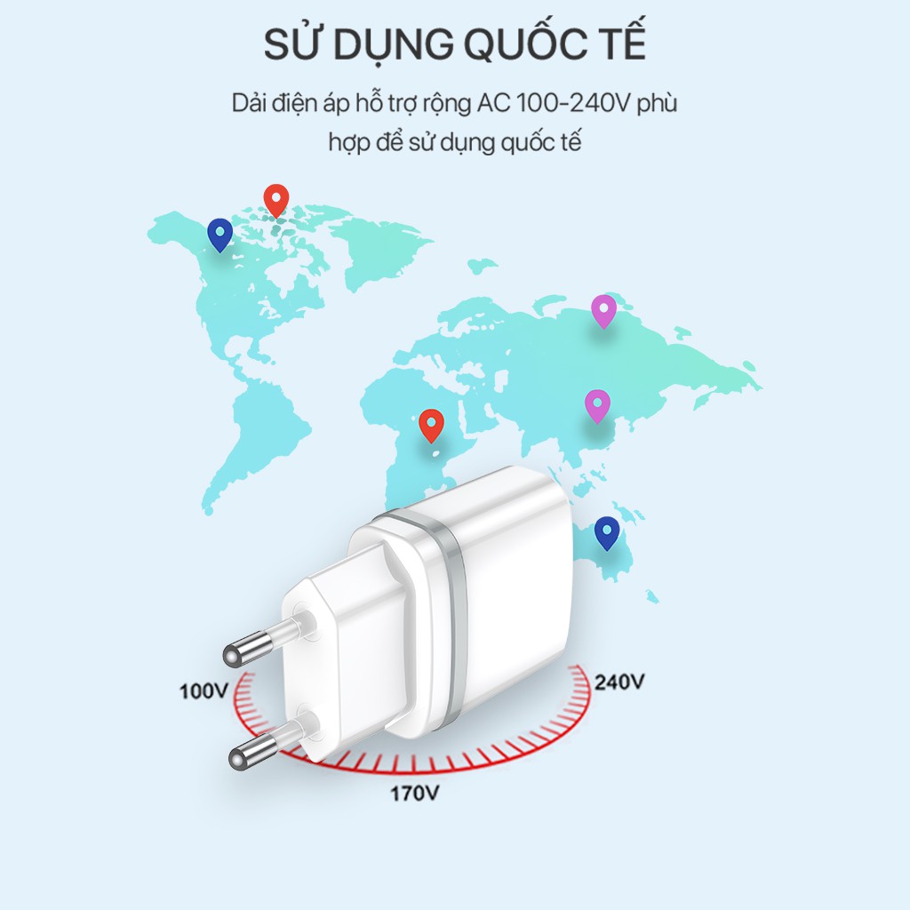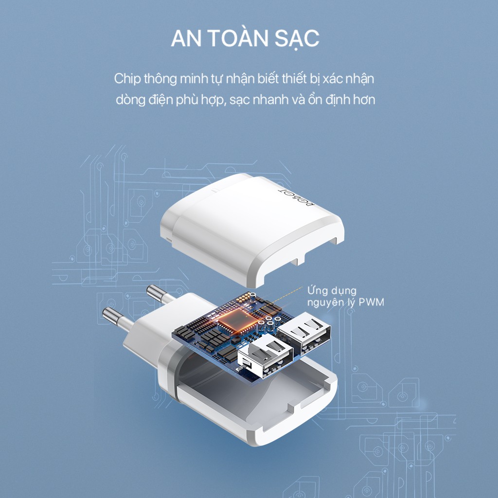 CỐC SẠC 2 CỔNG USB ROBOT RT-K9 - 2 CỔNG SẠC RA SẠC NHIỀU THIẾT BỊ IPHONE ANDROID - KÈM CÁP MICRO USBSản phẩm chính hãng ROBOT