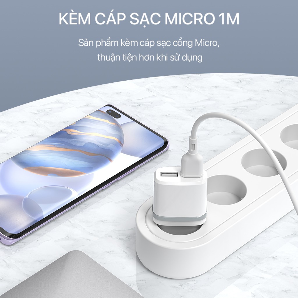 Cốc Sạc 2 Cổng USB ROBOT RT-K9 - 2 Cổng Sạc Ra Sạc Nhiều Thiết Bị iPhone Android - Kèm Cáp Micro 1m
