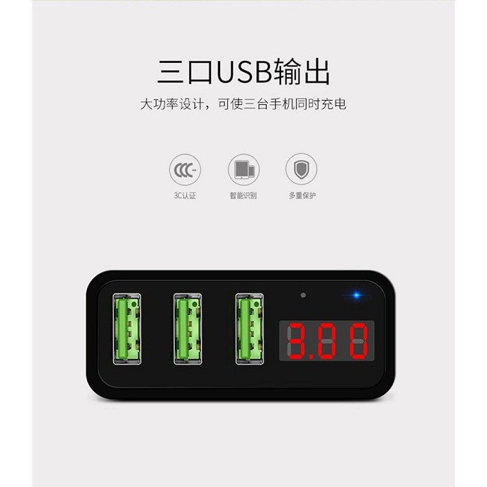 Cổng sạc: 1 cổng 1.2A, 1 cổng 2.0~2.4A, 1 cổng 2.4~3.0A