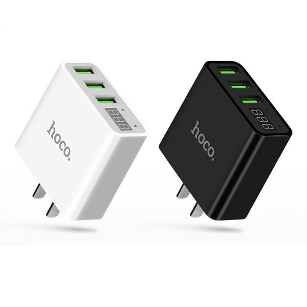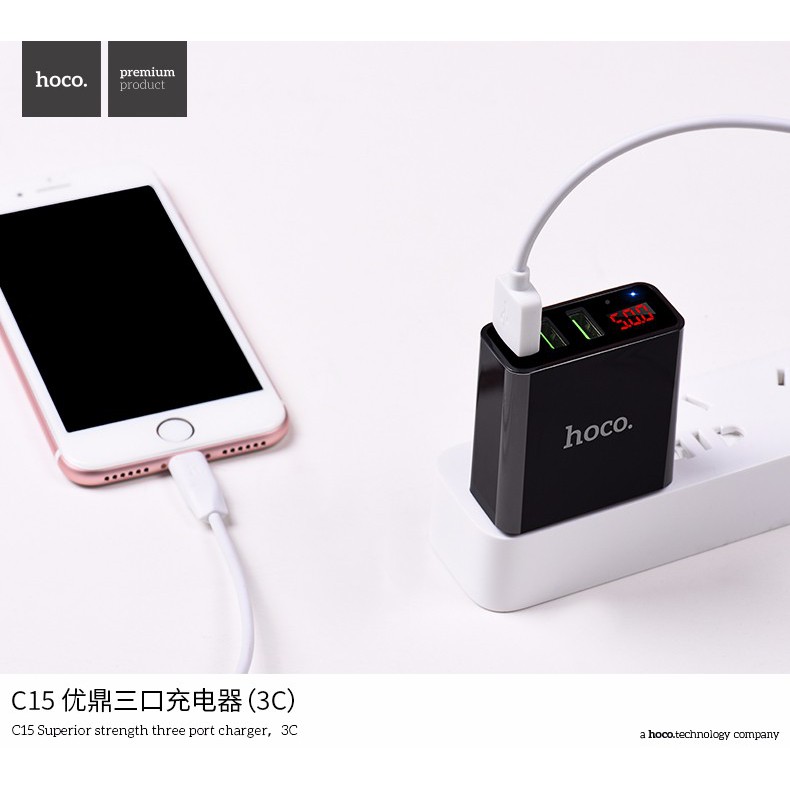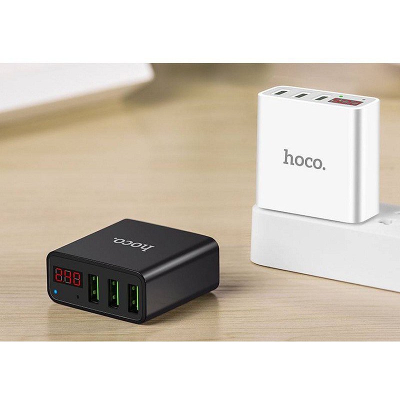 Cốc sạc 3 cổng Hoco C15 3A - màn hình LCD hiển thị điện áp