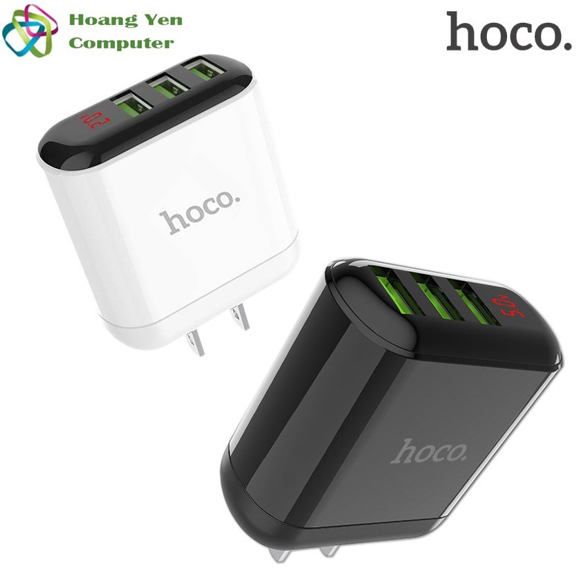 Cốc Sạc 3 Cổng Hoco HK1 3.5A Màn Hình LCD Hiển Thị Dòng Sạc - BH 1 năm - Hoàng Yến Computer