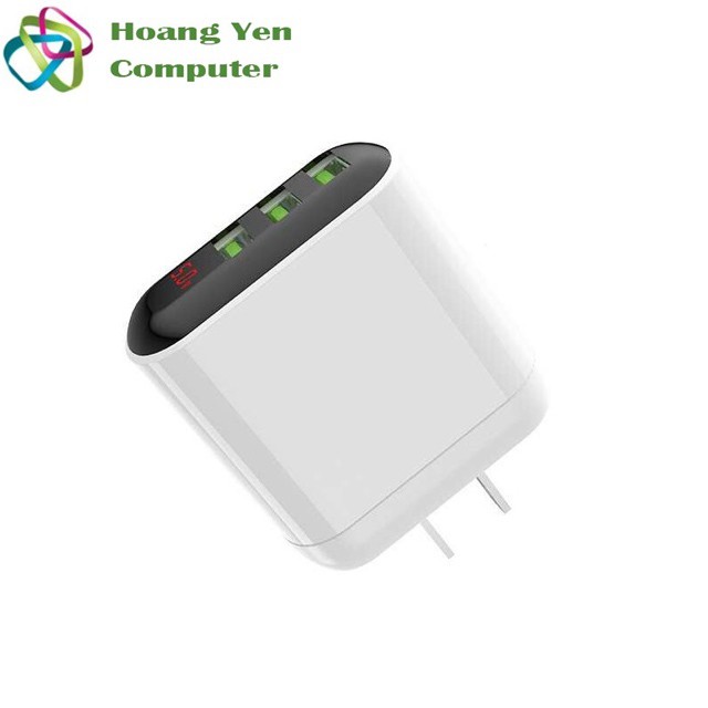 Điện Thoại & Phụ Kiện > Phụ kiện > Cáp, sạc & bộ chuyển đổi > Bộ sạc || Cốc Sạc 3 Cổng Hoco HK1 3.5A Màn Hình LCD Hiển Thị Dòng Sạc - BH 1 năm - Hoàng Yến ComputerCòn hàng