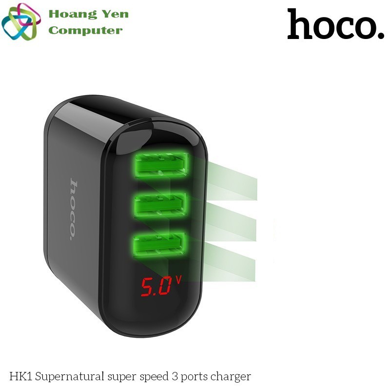 Giới thiệu Cốc Sạc 3 Cổng Hoco HK1 3.5A Màn Hình LCD Hiển Thị Dòng Sạc - BH 1 năm - Hoàng Yến Computer