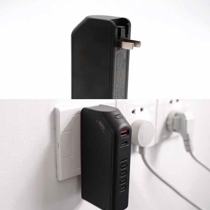 Sản phẩm được trang bị một phích cắm AC phù hợp với nhiều loại ổ cắm hiện nay. Phích cắm này được làm dạng dẹt và hoàn thiện từ vật liệu hợp kim nhôm mạ kim loại cao cấp, lâu bền. Đặc biệt, chúng có thể gập gọn, giúp pin trông gọn gàng hơn, dễ dàng mang bên mình.