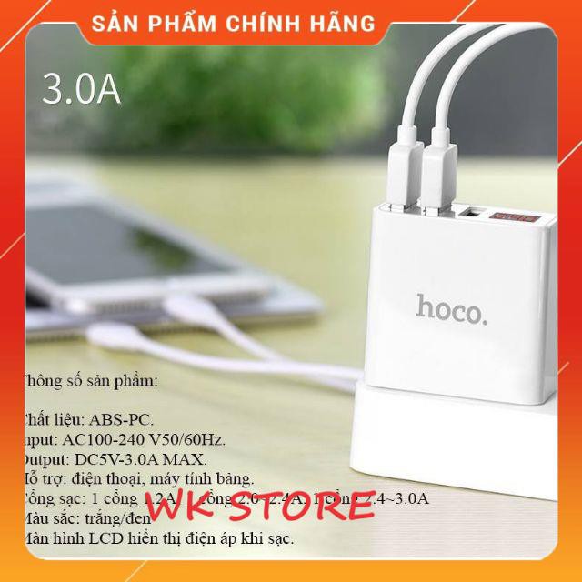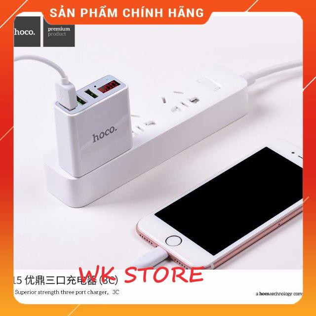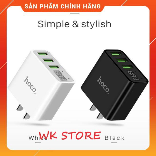Cốc sạc Hoco C15 3 cổng USB,màn led báo điện áp,BH 1 năm