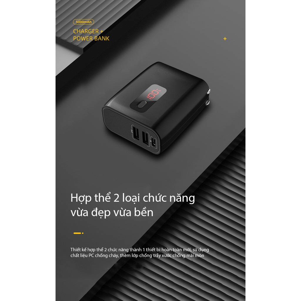 Điện Thoại & Phụ Kiện > Phụ kiện > Sạc dự phòng & Pin > Sạc dự phòng || Cốc sạc kèm pin dự phòng HKL-USB55 2 IN 1 dung lượng 5000mAh 2 cổng USB có màn hình hiển thị nhỏ gọn di độngCòn hàng