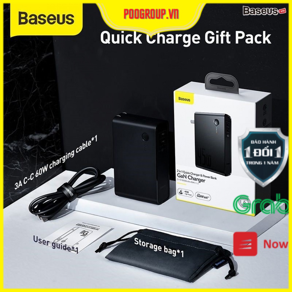 Cốc sạc nhanh kiêm pin sạc dự phòng Baseus GaN Power Station 45W 2 in 1 PD/QC3.0 (10000mAh , Type C/USB Quick Charge,Travel Charger & Powerbank )Cam kết 100% hàng chính hãng.