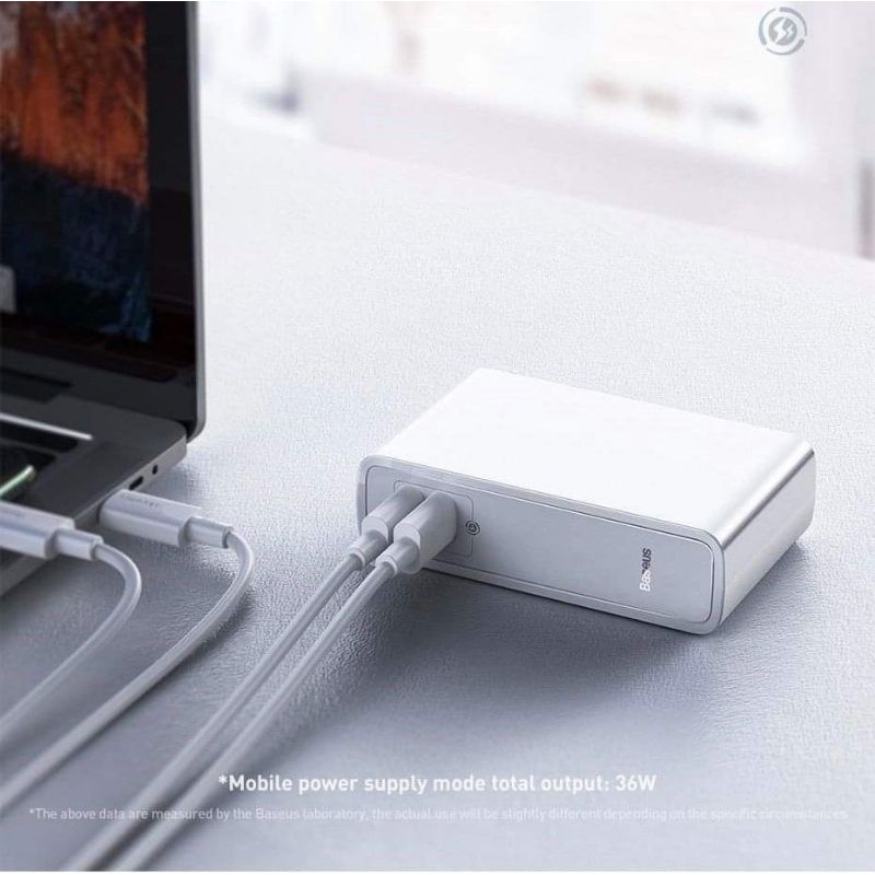 Thông tin sản phẩm : Cốc sạc nhanh kiêm pin sạc dự phòng Baseus GaN Power Station 45W 2 in 1 PD / QC3.0 , Sạc Macbook , Samsung Note 20 Ultra , IPhone 12 Pro Max- Thương hiệu : Baseus