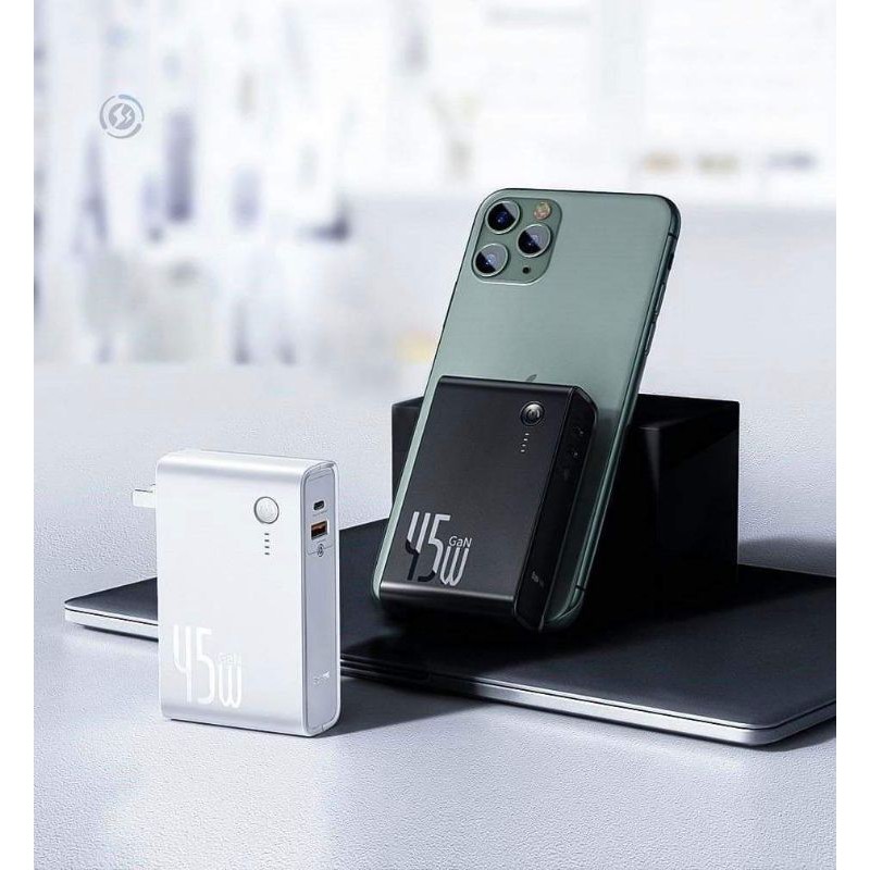 Cốc sạc nhanh kiêm pin sạc dự phòng Baseus GaN Power Station 45W 2 in 1 PD / QC3.0 , Sạc Macbook , IPhone , Samsung