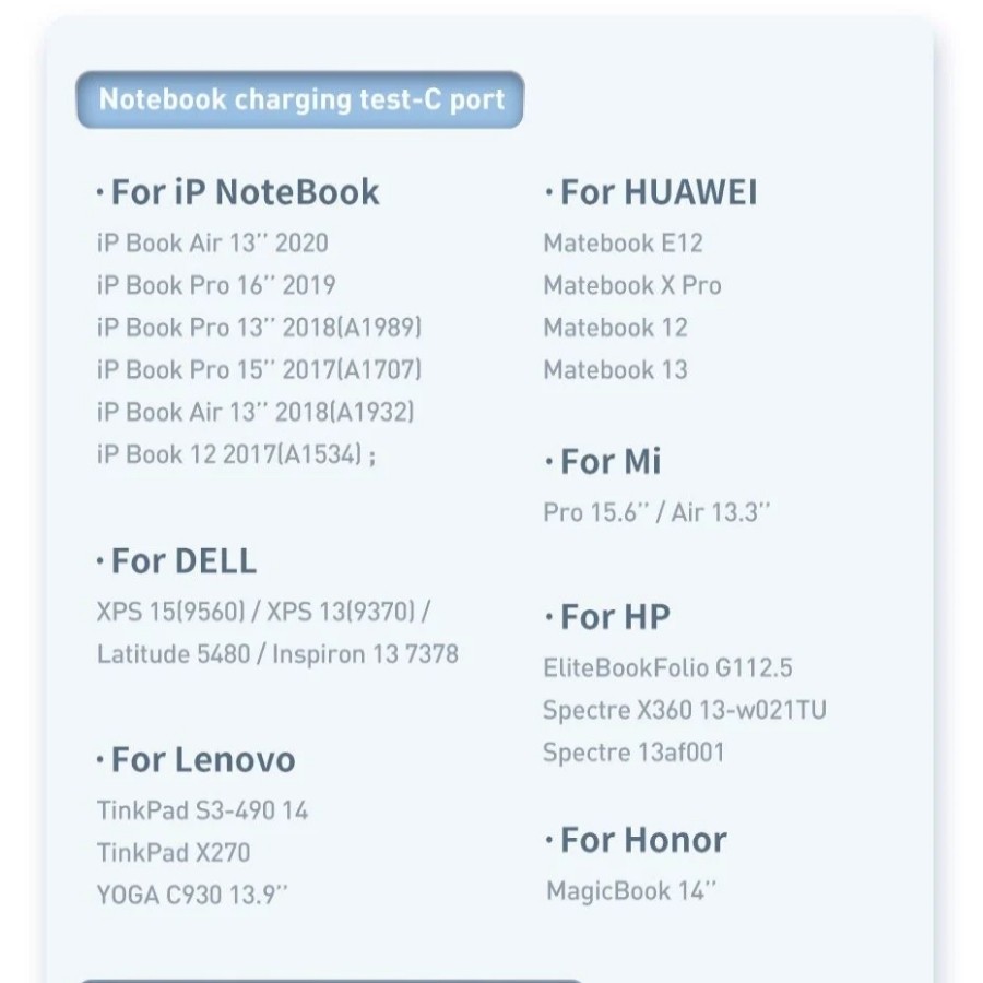 Type-C output: 5V=3A / 9V=3A / 12V=3A / 15V=3A / 20V=2.25A Max