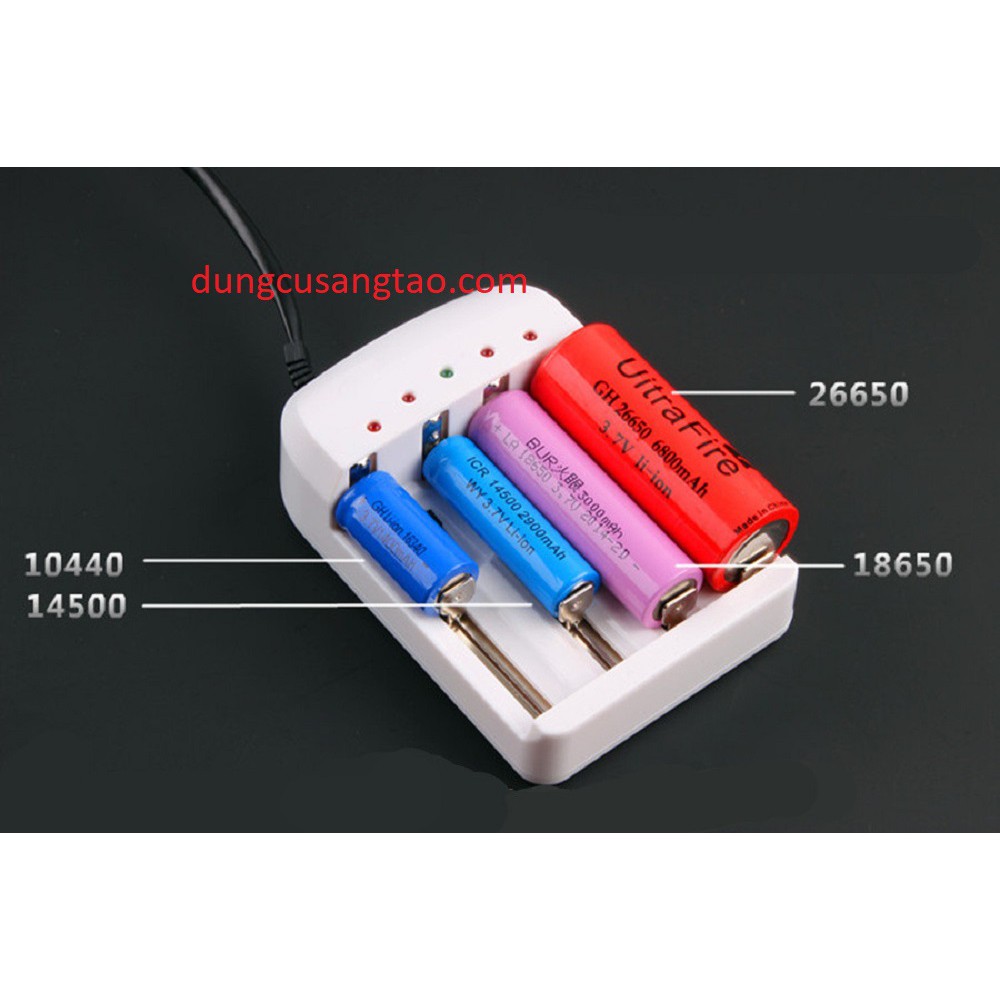 + 1 tới 4 pin: 18650/18500/14500/16340 pin Lithium -- 4.2V