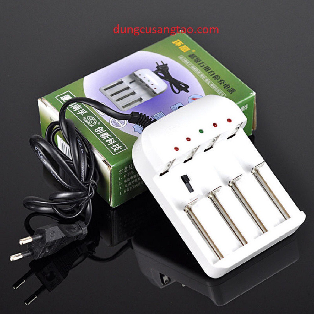 Bộ sạc đa năng có 4 ngăn sạc, được sử dụng sạc các loại pin tiểu AA hoặc AAA thông dụng như pin đồng hồ, pin remote máy lạnh, remote tivi, pin xe điều khiển đồ chơi trẻ em...Thông số kỹ thuật: