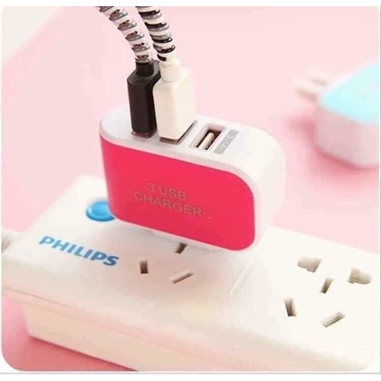 Điện Thoại & Phụ Kiện > Phụ kiện > Khác || Cốc sạc USB 3 cổng 3.1A có đèn led báo sk25Còn hàng