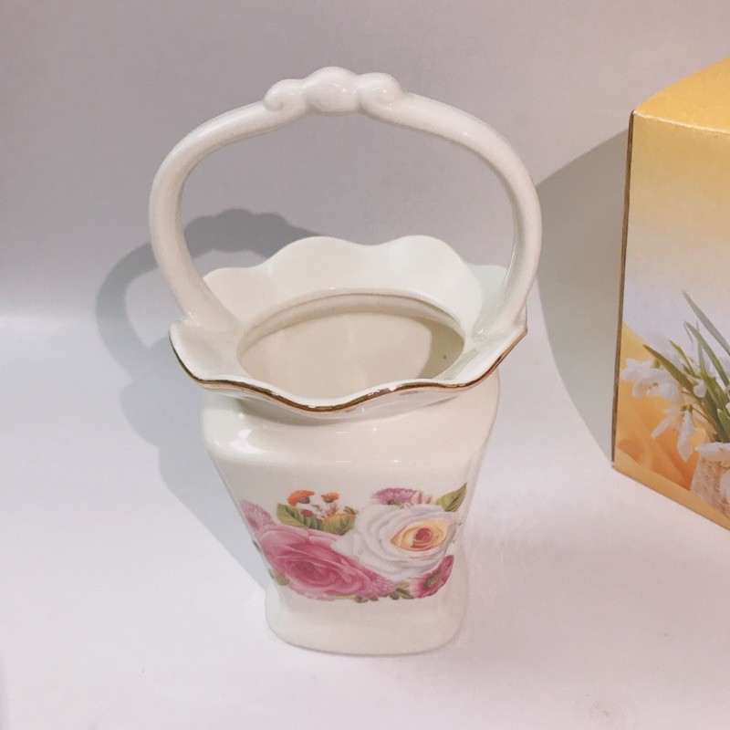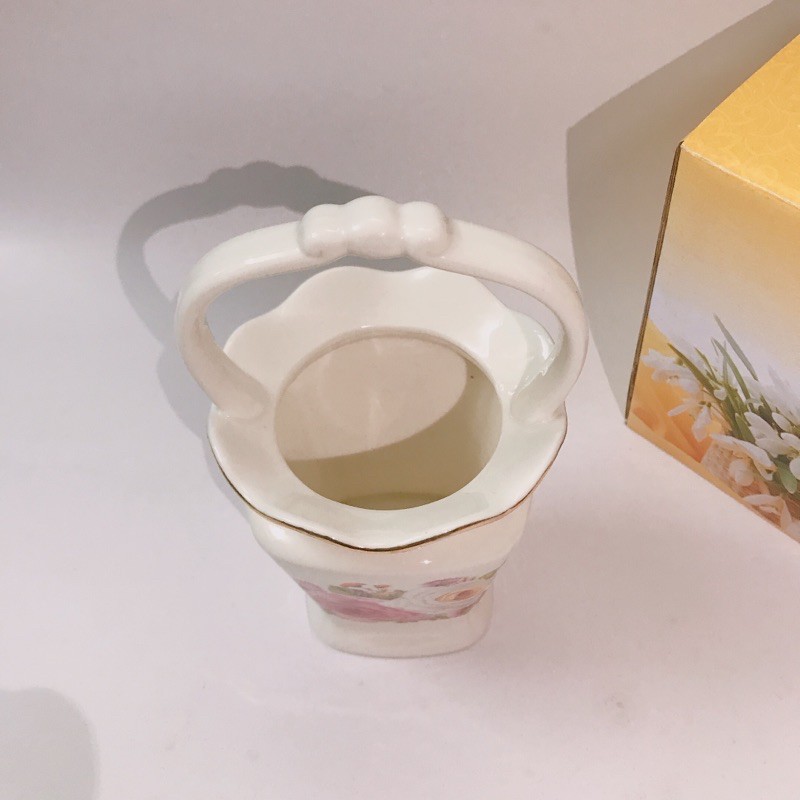 cốc sứ hoa hồng đựng thìa dĩa cao cấp quai nơ
