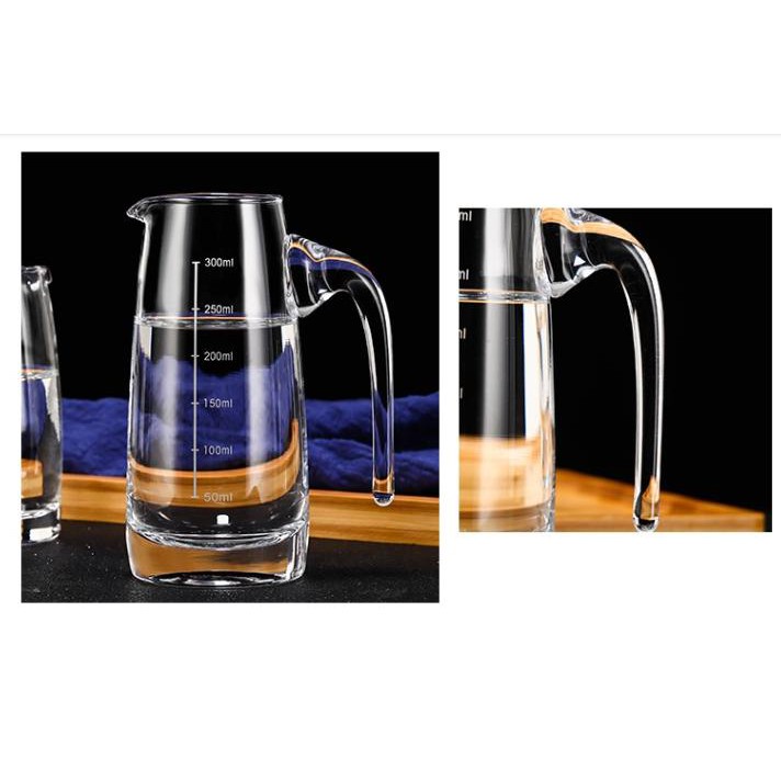 Cốc thủy tinh chia vạch có tay cầm, cốc thủy tinh rót rượu vang