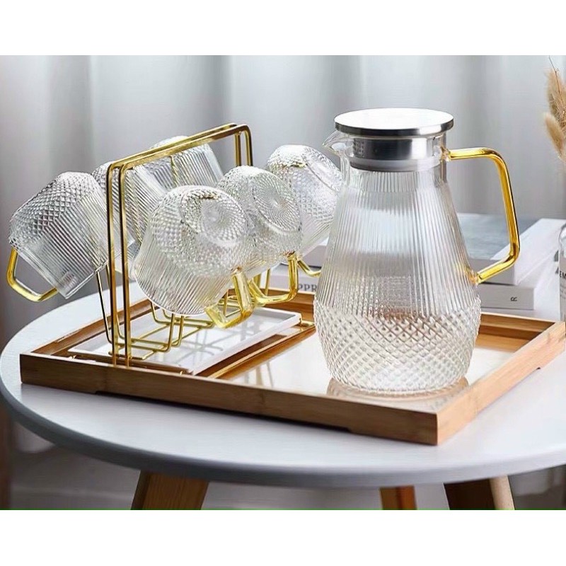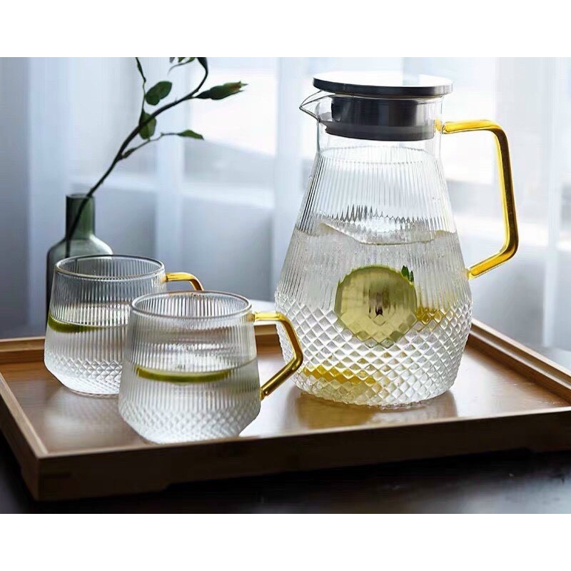 Nhà cửa & Đời sống > Bộ đồ bàn ăn > Bình nước & phụ kiện || Cốc thủy tinh quai vàng và bình thủy tinh chịu nhiệtCòn hàng