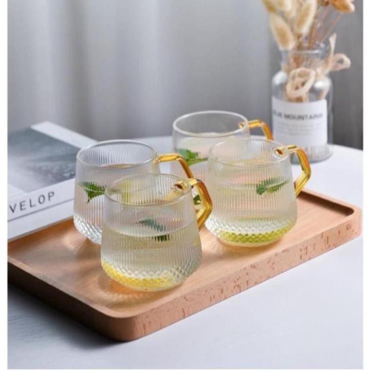 Nhà cửa & Đời sống > Bộ đồ bàn ăn > Bình nước & phụ kiện || Cốc thủy tinh quai vàng và bình thủy tinh chịu nhiệtCòn hàng