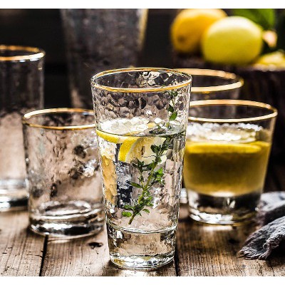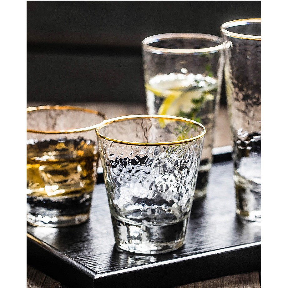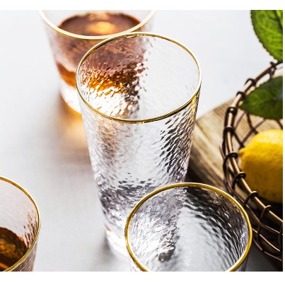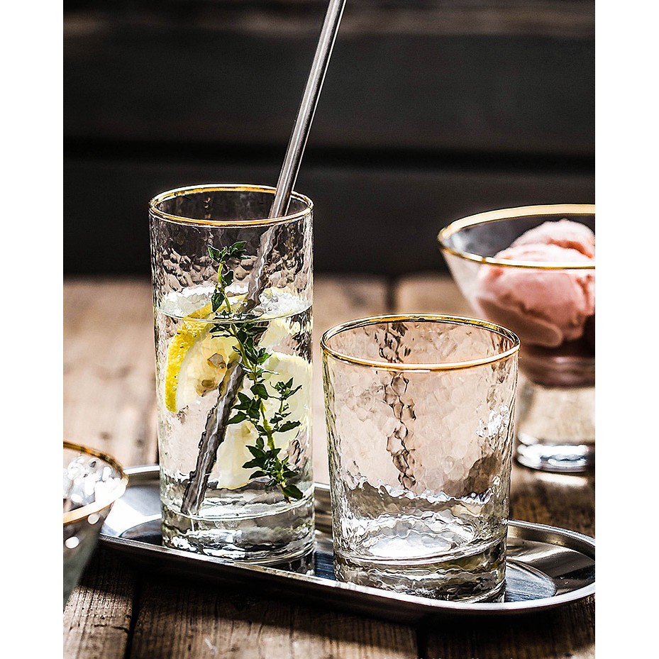 Cốc thủy tinh trong sần viền vàng cao cấp size to 350-450 ml (cao/thấp)