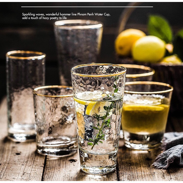 Giới thiệu Cốc thủy tinh trong sần viền vàng cao cấp size to 350-450 ml (cao/thấp)
