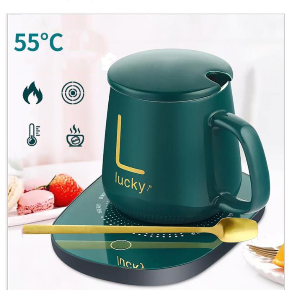 Bộ Cốc Uống Cafe Uống Trà Kèm Đế Hâm Nóng LUCKY Tặng Kèm Thìa Mạ Vàng cao cấp
