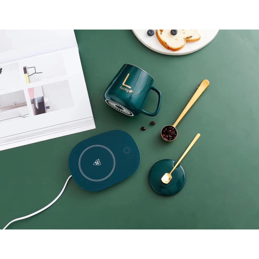 Cốc Uống Cafe Uống Trà Kèm Đế Hâm Nóng Tặng Kèm Thìa Mạ Vàng