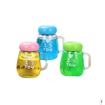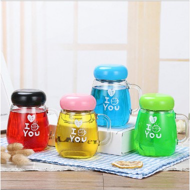 Cốc uống nước, pha trà thủy tinh có lưới lọc inox nắp màu cute