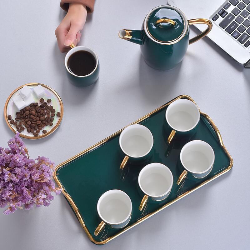 Bộ Cốc Xanh Ngọc Bích [CAO CẤP] Kiểu dáng Bắc Âu,mạ vàng 18k,men sáng,sang trọng,đẳng cấp,làm quà tặng rất sang