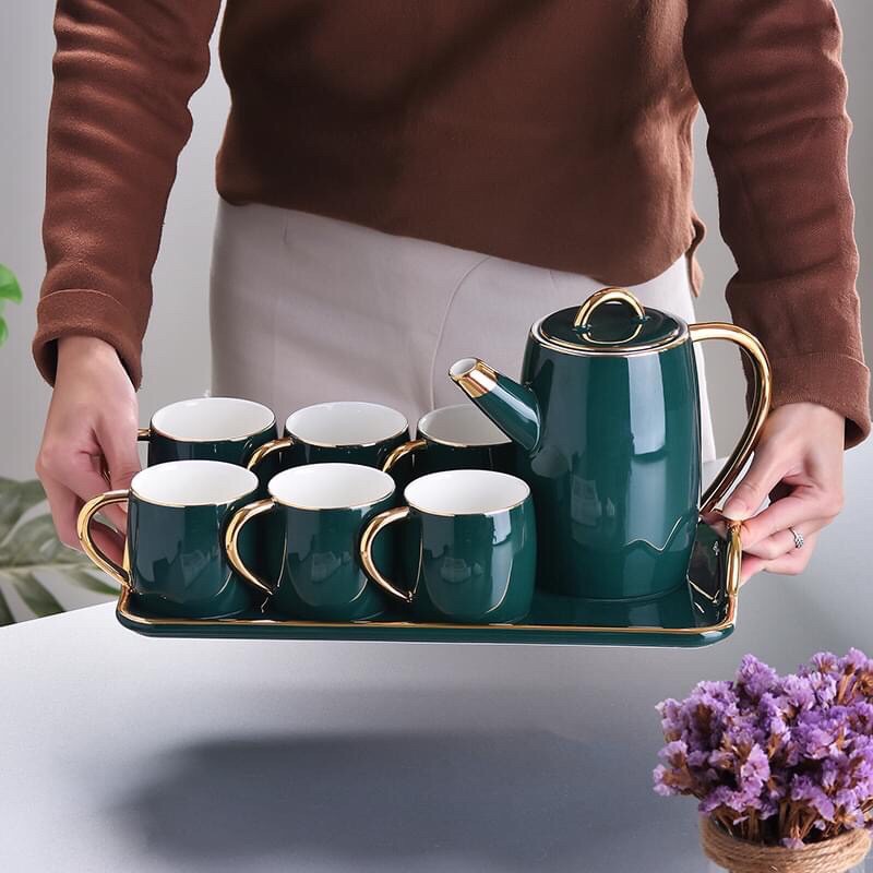Giới thiệu Bộ Cốc Xanh Ngọc Bích [CAO CẤP] Kiểu dáng Bắc Âu,mạ vàng 18k,men sáng,sang trọng,đẳng cấp,làm quà tặng rất sang