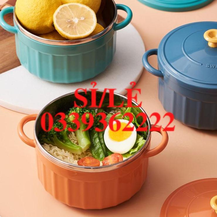 Nhà cửa & Đời sống > Bộ đồ bàn ăn > Tô || [ COCOLOVE ] Bát úp mì - Bát ăn mì tôm inox 2 lớp cách nhiệt hình chiếc nồi có nắp đậy tặng kèm thìa (BHN04)Còn hàng