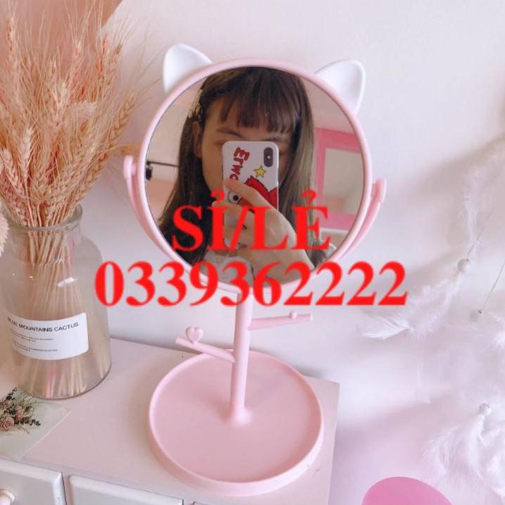 Hôm nay, shop xin giới thiệu tới chị em sản phẩm Gương trang điểm xoay để bàn hình tai mèo dễ thương sau đây!