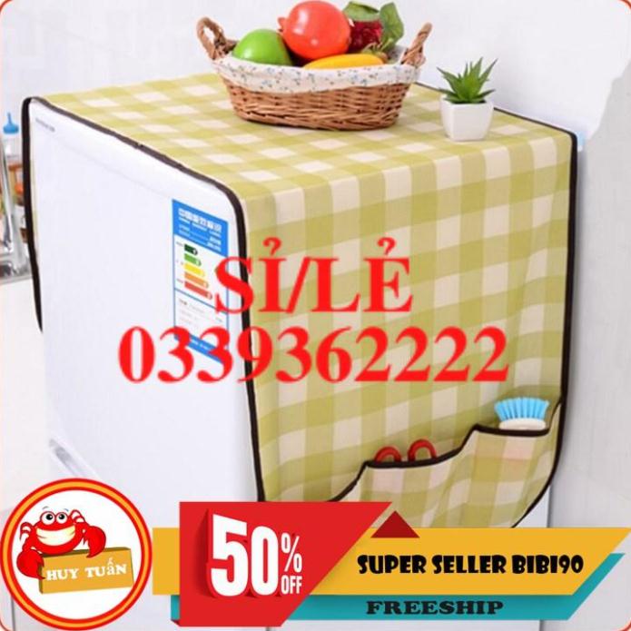 [ COCOLOVE ] Tấm phủ tủ lạnh bằng vải có ngăn HAIANHSHOP