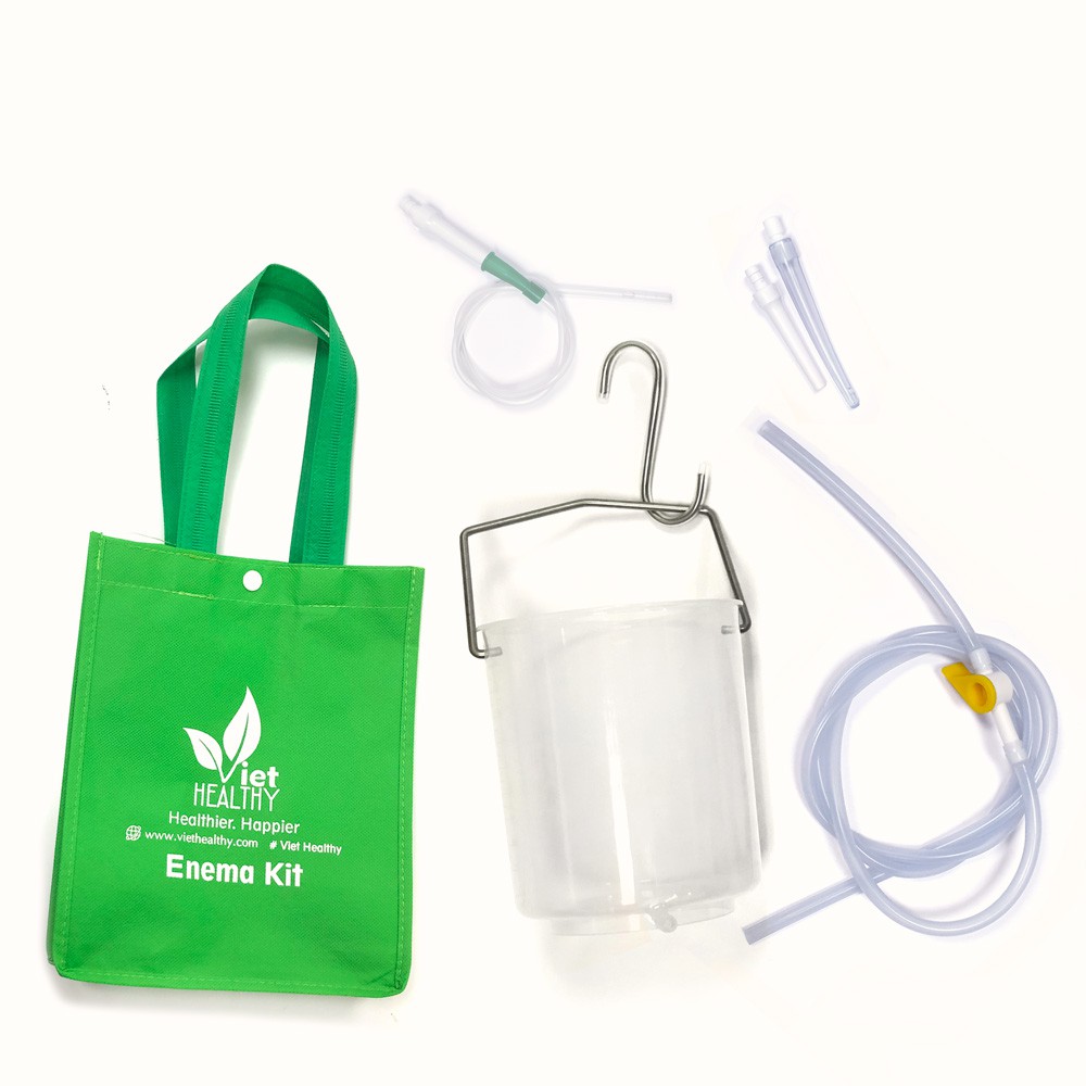 Bộ Coffee Enema bình nhựa dây vòi silicone ViethealthyBộ dụng cụ làm enema cao cấp nhựa (Plastic Enema Kit) bao gồm: