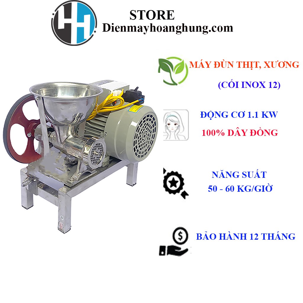 [CỐI 12 INOX] Máy đùn thịt xay, đùn xương, đùn cua, đùn cá đa năng Động cơ công suất 1.1KW dây Đồng - Cối 12 INOX