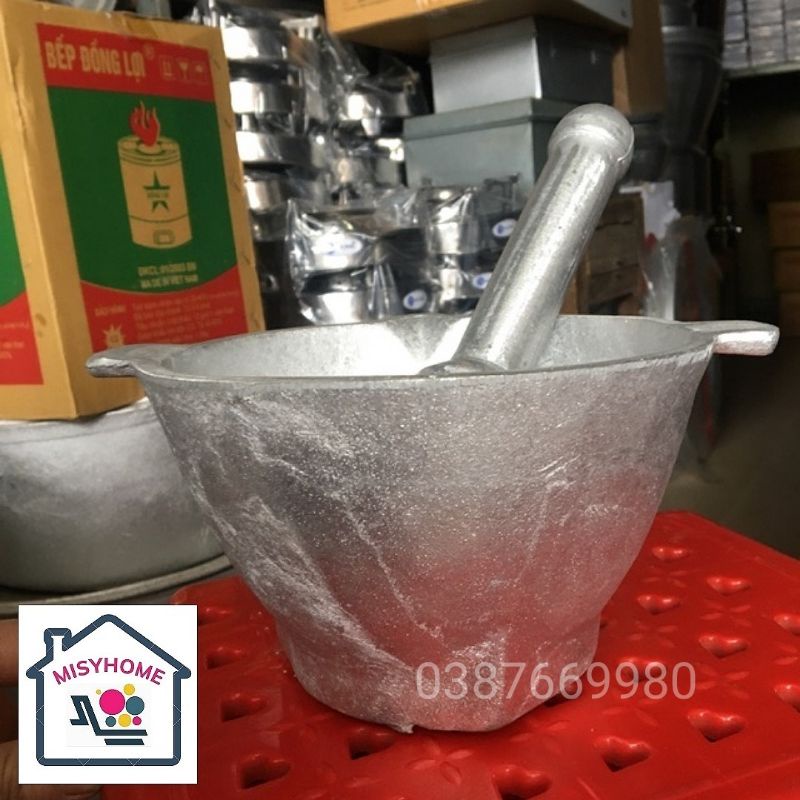Cối chày gang nhôm đúc loại to đặc bền đẹp giã thịt tỏi ớt muối vừng lạc ruốc giò chả khô gà tiêu đồ ăn dặm Misyhome