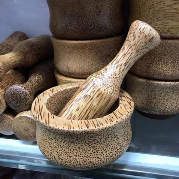 Bộ sản phẩm bao gồm: 1 chày + 1 cối giã, làm bằng gỗ cây dừa trên 20 năm tuổi.- Sản phẩm được công nhận đủ tiêu chuẩn xuất khẩu.