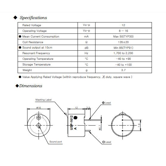 Giới thiệu [Còi Hàn Quốc] Còi Xung 12V 12x16MM USP-1612ACòi Tần Số 12V O.t.o Bản Mạch Cao Cấp