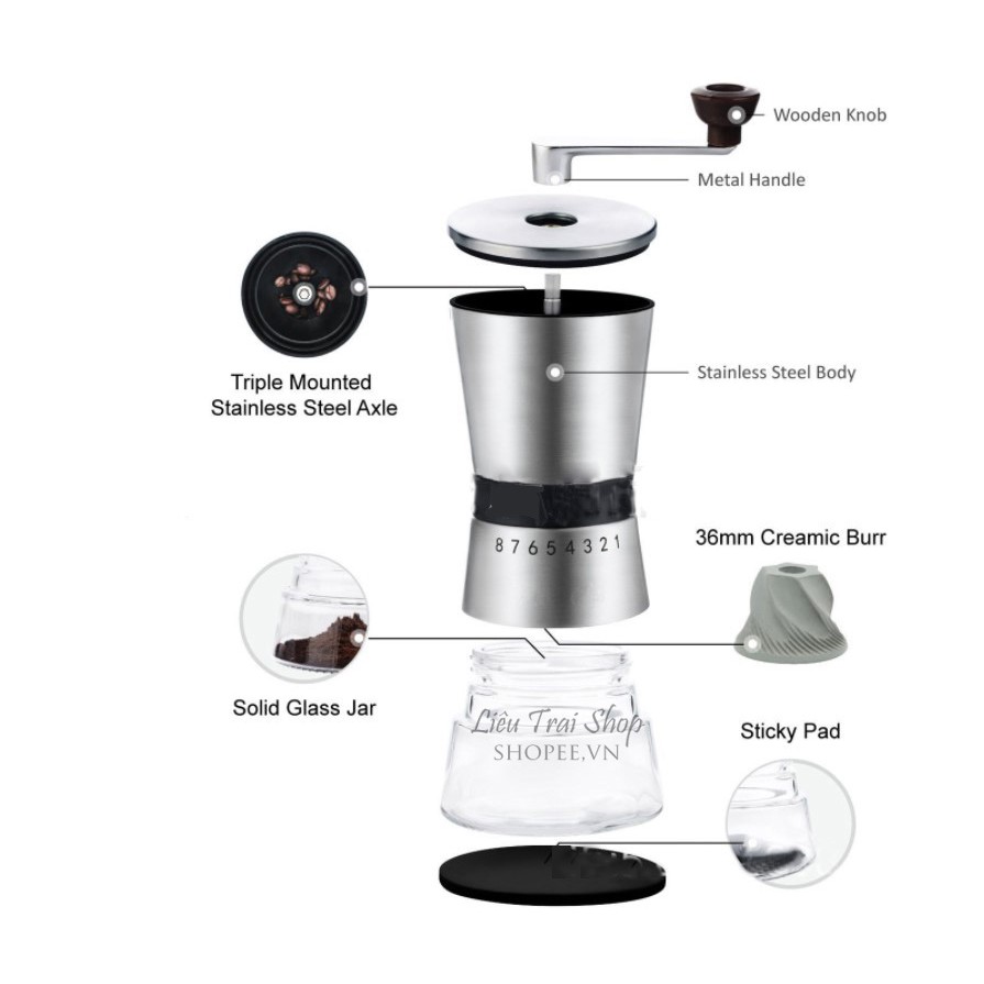 Nhà cửa & Đời sống > Dụng cụ nhà bếp > Dụng cụ pha trà, cà phê || Cối xay cà phê cao cấp lõi gốm ceramic burr precision. coffee grinderCòn hàng