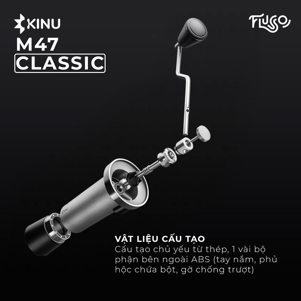 Kinu M47 Classic - CỐI XAY THỦ CÔNG TIÊU CHUẨN CAO CẤPSản phẩm bao gồm: Một túi đựng và một cối xay Kinu M47 Classic