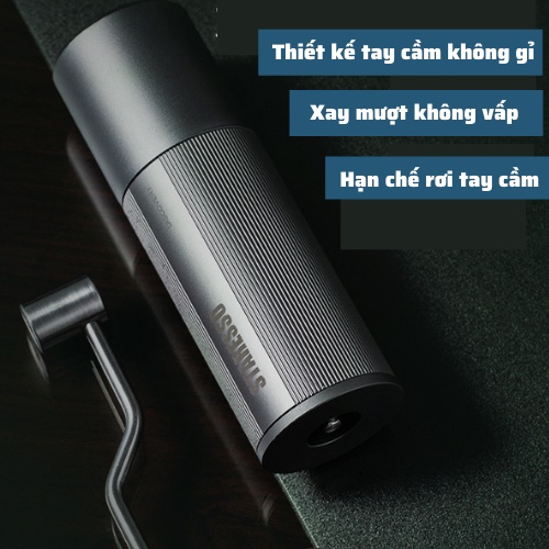 - Cối xay cafe bằng tay vỏ nhôm CNC,lưỡi xoay từ chất liệu Titanium cứng, sắc, cắt mịn và giữ nguyên hương vị cafe